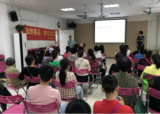 活动现场,花城街禁毒专职人员利用色彩鲜明的PPT,向社区群众详细讲解毒品的常见种类、对个人和家庭的严重危害及预防的方法等内容,切实加深基层群众对禁毒知识的了解。随后,禁毒专职人员和禁毒社工结合工作实际解答了社区群众在禁毒、戒毒方面的疑惑。在活动的最后,禁毒办工作人员带领社区居民进行了简单而庄严的宣誓,一句饱含感情的“我愿意主动拒绝毒品、远离毒品,成为禁毒宣传者”再次表达了禁毒办工作人员及社区群众的禁毒决心。