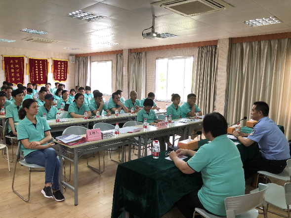 由于每年暑期大量流动人口进出海湾旅游区,毒贩随机可乘,给禁毒部门带来严峻挑战,为此海湾旅游区禁毒办未雨绸缪、精心组织、提前介入,2018年6月11日上午禁毒办合同工会组织碧海金沙全体工作人员(80人)开展以“爱生命、不吸毒”--争当禁毒志愿者主题培训活动。