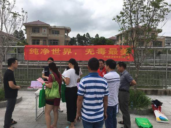 此次宣传分三场次。第一场次活动,禁毒宣传点设在六联社区罗屋广场,面向社区流动的居民群众,通过展示仿真毒品、参与禁毒游戏、派发禁毒宣传单张和宣传礼品等多种形式宣传毒品的危害,以及如何拒毒、防毒的方法。第二场次活动,禁毒宣传进家庭,禁毒社工、社区平安志愿者和社区工作人员走进社区居民群众家里,了解居民群众家庭的禁毒教育情况,面对面进行禁毒教育宣传,动员居民群众重视家庭的禁毒教育,并派发各类禁毒宣传单张和礼品。第三场次活动,禁毒宣传进工厂和商家,重点向工厂及商家的负责人、保安人员进行禁毒教育宣传,呼吁工厂及商家积极开展禁毒宣传抵制毒品,并派发相关宣传品。以上活动获得了广大居民群众的支持,工作人员共派发了禁毒宣传单张100余份,环保袋、手机扣、纸巾和扇子等禁毒宣传礼品400余份。