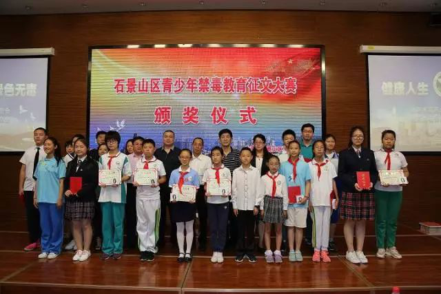 中国禁毒网讯 为深入贯彻落实中央和北京市委关于加强毒品预防教育工作的要求,大力推进青少年毒品预防教育“6.27”工程,全力推进全国禁毒示范城市创建活动,落实创建无毒学校工作要求,石景山区禁毒办联合区教委共同举办了青少年禁毒知识征文大赛,6月11日,在石景山区古城中学举行隆重的颁奖仪式。全区各中小学校德育干部、老师和学生代表约200余人参加仪式。区人大副主任、区委政法委常务副书记、区禁毒委副主任朱钢银、北京市公安局禁毒总队四大队大队长钟平、区教委副主任于秀云等应邀出席仪式。