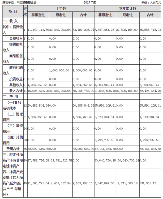中国禁毒基金会2017年度工作报告