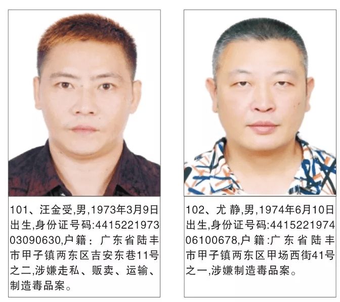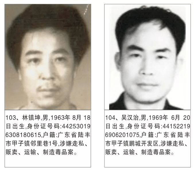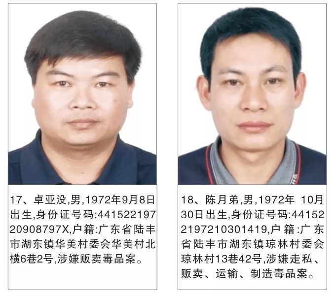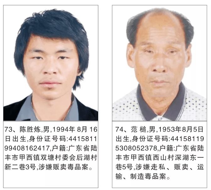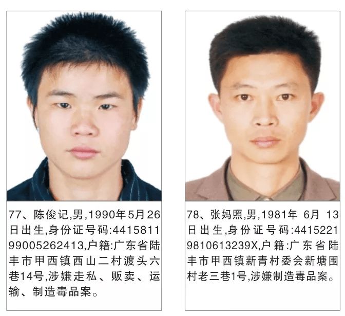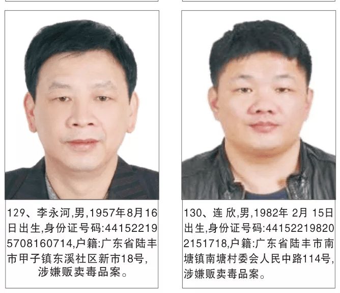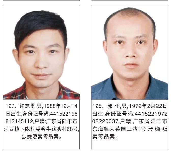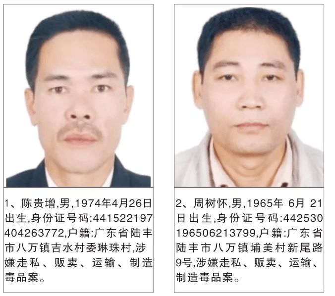 为严厉打击毒品犯罪活动,严惩震慑毒品犯罪分子,有效维护社会治安稳定,陆丰市公安机关持续加大追逃力度,现决定对陈贵增等130名涉毒上网逃犯进行公开悬赏通缉。
