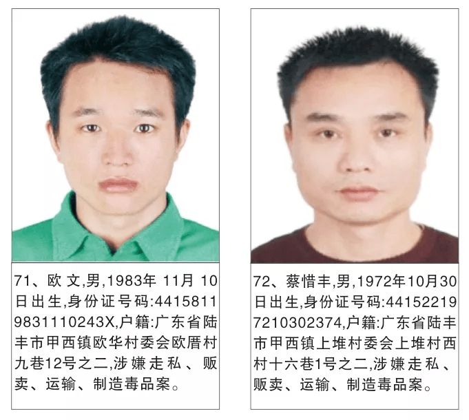 以下为陆丰市公安局发布的悬赏通告: