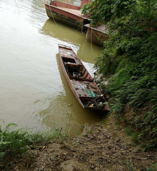 图为毒贩偷渡界河时驾驶的铁皮船