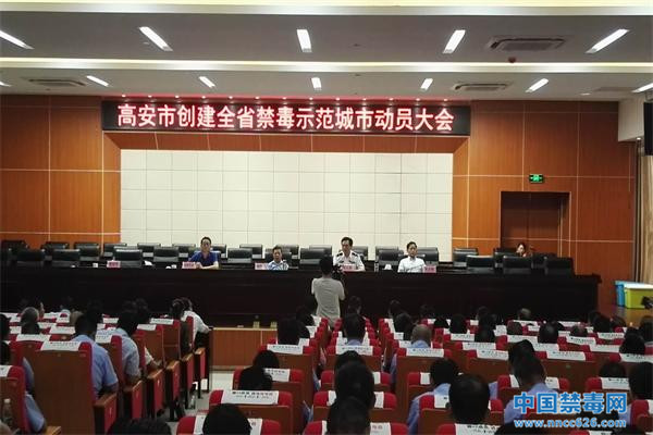 图为江西全省禁毒示范城市动员大会。中国禁毒网发