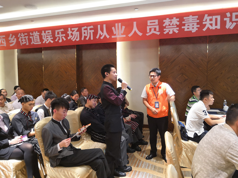 中国禁毒网讯(通讯员段巧玲 彭浩清)为进一步规范娱乐场所的经营管理秩序,有效防范毒品在公共娱乐场所的滋生蔓延,9月3日下午,深圳市宝安区西乡街道维稳综治办(禁毒办)联合流塘派出所、臣田社区组织辖区的登喜路酒店、天一会、南国明珠、IK.KTV的从业人员约120人,在登喜路酒店二楼举办公共娱乐场所从业人员禁毒知识培训会。