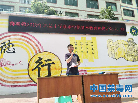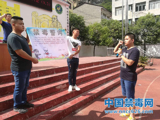 图为学生在进行禁毒宣誓。中国禁毒网发