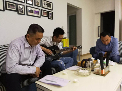 李仲昕、元朝、黄穆然正在创作《全民禁毒歌》。