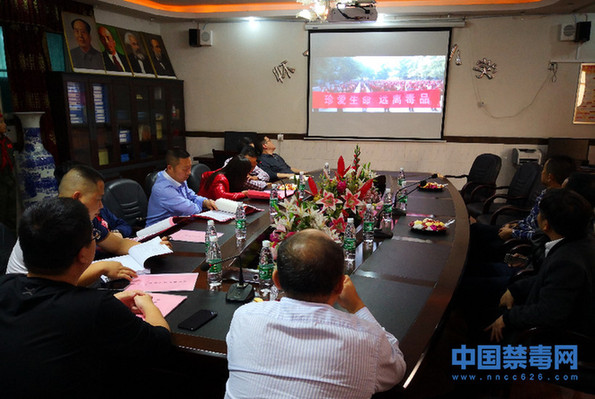 图为禁毒办工作人员参观交流禁毒工作现场。中国禁毒网发
