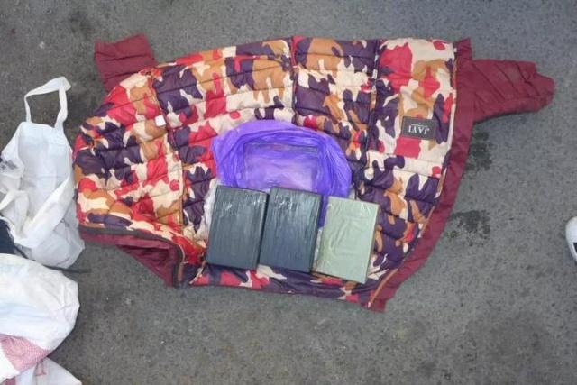 人赃俱获!民警在他们携带的蛇皮袋中,发现了藏裹在一件棉衣中的海洛因,足足1.95公斤!