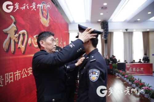 2018年11月15日这一天,贵阳市公安局94名民警光荣退休。在退休仪式上有这么一个画面:退休的老民警将陪伴自己多年的警帽摘下,戴在了新入警的年轻民警头上……