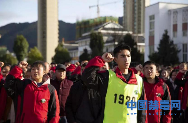 图为凯里市第一中学学生进行禁毒宣誓。中国禁毒网发