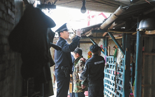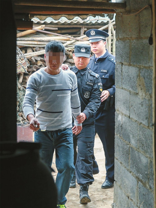 民警搜查杨某华住所。人民公安报记者 陈路坤摄