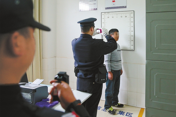 民警带杨某华进行尿检。人民公安报记者 陈路坤摄