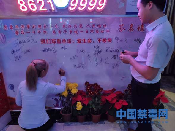 图为市民朋友在禁毒承诺签名墙上留下签名。中国禁毒网发