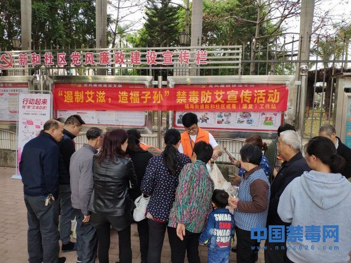 中国禁毒网讯(通讯员 简培峰)2月27日下午,深圳市宝安区新和社区村委门口举办了由福海街道禁毒办承办的禁毒防艾的宣传活动,活动以“遏制艾滋,造福子孙”为主题。