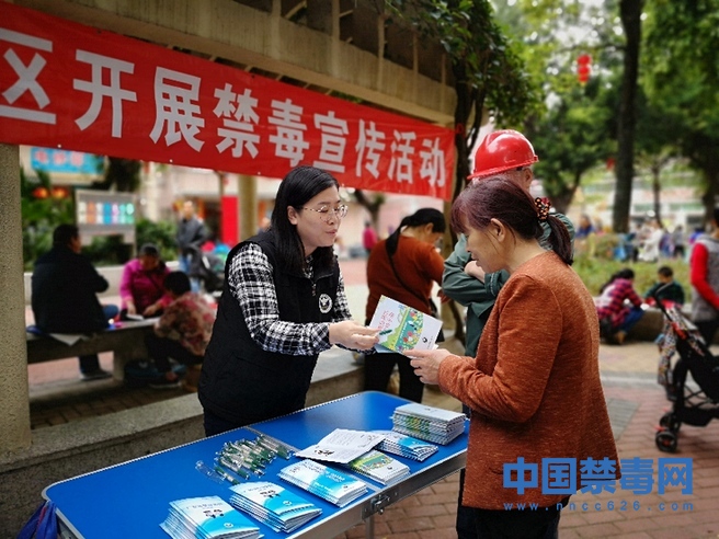 活动中,禁毒社工通过悬挂横幅、设立禁毒咨询台,向附近休闲休憩的市民派发禁毒宣传单、介绍毒品种类及危害性。针对辖区的老年人采用了更为通俗易懂的方式进行了讲解,并结合宣传手册上的内容向他们讲解毒品的种类,吸食毒品后对个人、家庭、社会造成的巨大危害,告知他们不法分子的诱人手段,告诫他们一人染毒祸害全家的危险,呼吁市民拿多一些禁毒宣传册子回去跟家人、亲戚朋友宣传禁毒常识。同时,禁毒社工鼓励市民积极举报涉毒违法犯罪行为。