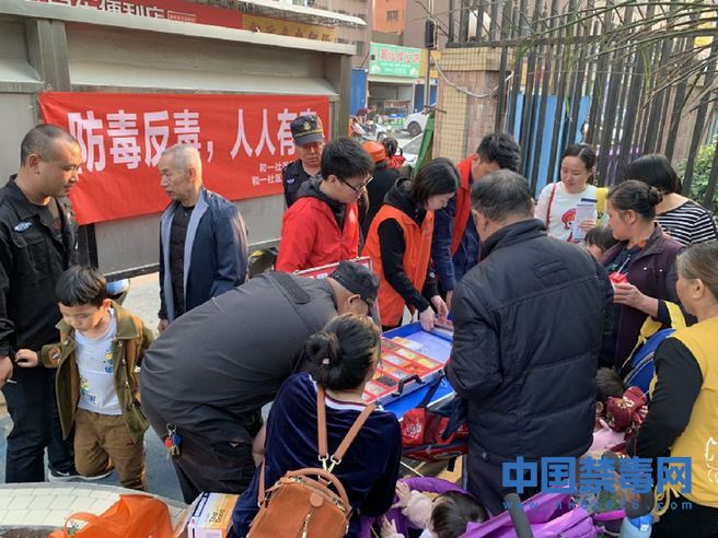 活动中,工作人员主动向社区居民讲解毒品的严重危害性和预防办法,宣传禁毒相关法律法规及相关的禁毒知识,同时,教育引导广大群众增强识毒、拒毒、防毒、反毒意识,自觉抵制毒品。工作人员向驻足群众发放禁毒宣传单,特别对青少年进行了认真细致的讲解,请少年正处于好奇心强特别强的时候,辨别是非能力弱,让他们懂得在陌生环境里不能与陌生人搭讪、不接受他们饮料及食品。告知他们不法分子的诱人手段,告诫他们一人染毒祸害全家的危险。