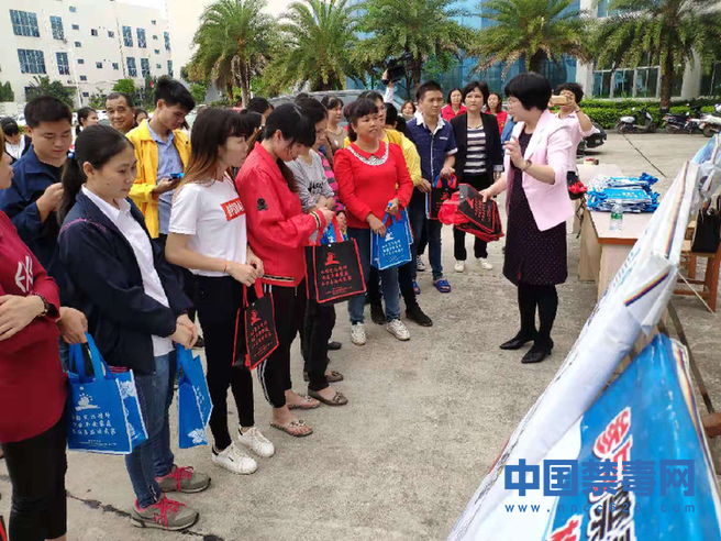 活动中,廉江市妇联主席黄海桃现场讲解了毒品的种类及危害,禁毒社工向群众发放了禁毒宣传手册、禁毒知识单页、禁毒宣传礼品袋,引导广大职工“珍爱生命,远离毒品”,呼吁更多有社会责任感、热心禁毒事业的群众加入到禁毒志愿者行列中。