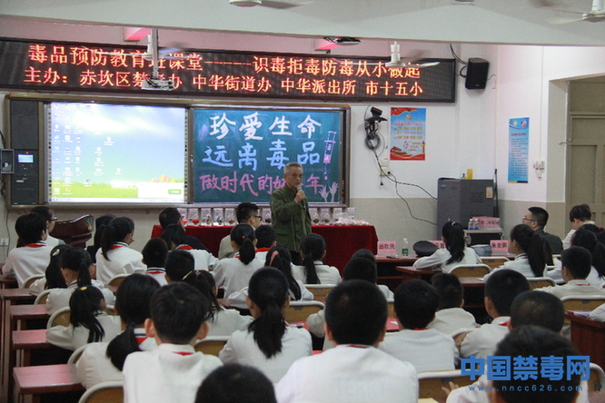 中国禁毒网讯 为不断推进青少年毒品预防教育工作,有效遏制青少年涉毒问题的发展蔓延,4月3日上午,广东省湛江市赤坎区禁毒办联合中华街道办,中华派出所及湛江市第十五小学开展毒品预防教育进课堂活动。赤坎区关工委常务副主任、区禁毒委副主任田欣民,赤坎区禁毒办副主任黄日盈等参加了本次宣传活动。