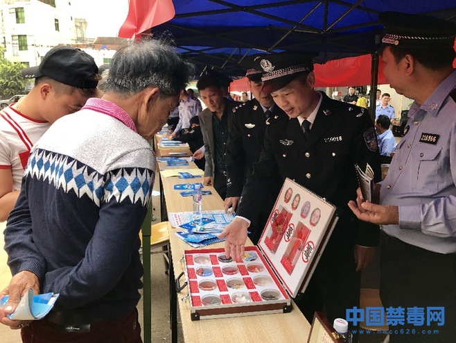 活动现场,工作人员通过设立咨询台、发放禁毒宣传资料、摆放禁毒宣传展板、展示毒品仿真样品等形式向现场群众讲解有关禁毒知识,指出毒品的危害,教育群众如何去防范毒品侵害。