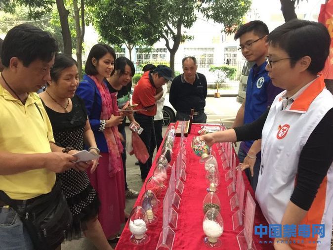 图为禁毒社工现场展示毒品仿真模型。中国禁毒网发