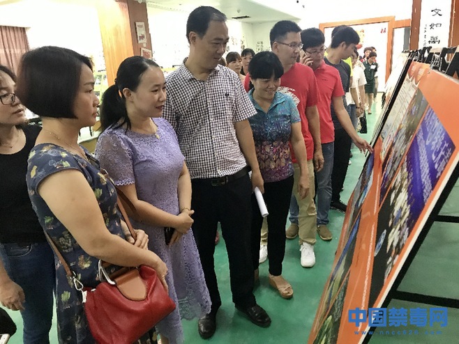 图为徐闻县妇联组织系统干部职工参观禁毒主题图展活动现场。中国禁毒网发