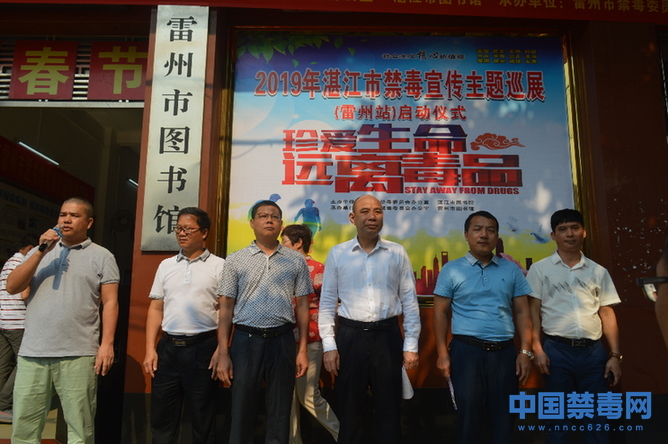 中国禁毒网讯 为深入推进全市禁毒宣传活动,全面提高广大群众的拒毒、防毒意识和参与禁毒斗争的积极性,4月19日上午,由广东省湛江市禁毒委员会办公室、湛江市图书馆主办,雷州市禁毒委员会办公室、雷州市图书馆承办的 “珍爱生命,远离毒品”2019年湛江市禁毒宣传主题巡展(雷州站)启动仪式在雷州市公共图书馆举行。雷州市副市长、公安局局长林华甫出席仪式并讲话,并宣布活动启动。雷州市文化广电旅游体育局、教育局、司法局、雷城街道办、图书馆等有关部门负责人和学校师生600余人参加活动。