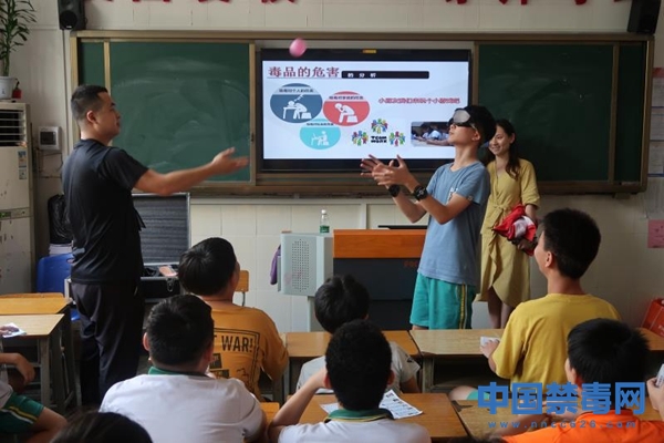 图为禁毒社工带学生体验禁毒体验仪。中国禁毒网发