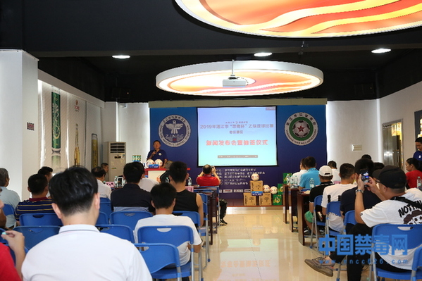 图为湛江市“禁毒杯”乙级足球比赛新闻发布会现场。中国禁毒网发