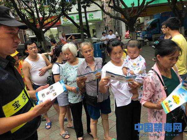 图为工作人员向群众发放禁毒宣传材料。中国禁毒网发