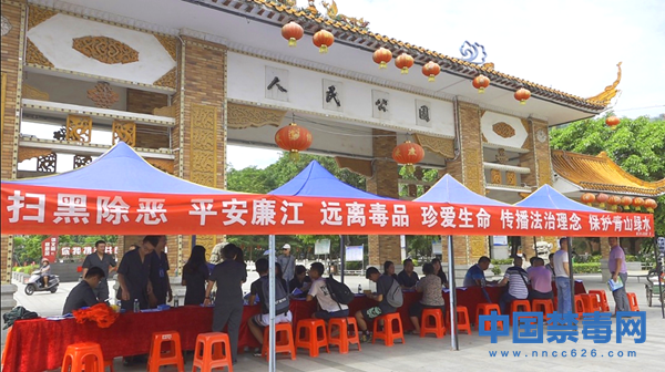 中国禁毒网讯 近日,广东湛江市廉江市人民法院联合廉江市环保局,在廉江市人民公园开展大型禁毒宣传活动。