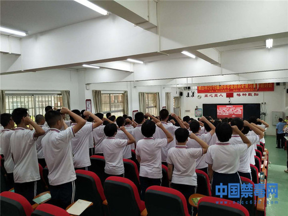 活动现场,禁毒大队民警曾炯锋给学生们上了一堂生动有趣的禁毒宣传课,通过真实案例让同学们了解了什么是毒品、毒品的种类、毒品的危害以及青少年如何保护自己抵御新型毒品等知识,现场活动气氛非常活跃。随后,鹤山市禁毒办专职副主任麦定权做了总结发言,并与学生一起进行禁毒宣誓,参观禁毒宣传教育图片展板和毒品仿真模型展览,进一步提高了学生识毒、防毒、拒毒能力。