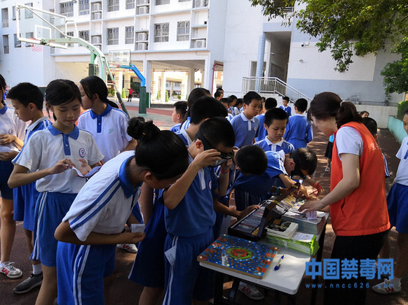 中国禁毒网讯(通讯员 彭浩清)6月20日下午,深圳市宝安区西乡街道凤凰岗社区在凤岗小学开展趣味性的禁毒宣传活动。