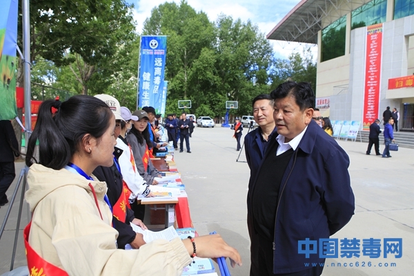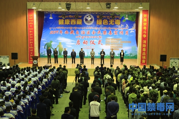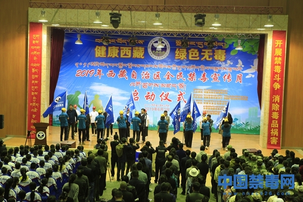 ↑6月3日,以“健康西藏、绿色无毒”为主题2019年西藏自治区全民禁毒宣传月启动仪式在拉萨市举行。活动包括西藏自治区高校禁毒联盟志愿授旗仪式及禁毒主题书画文章作品展。西藏自治区公安厅党委委员、副厅长、区禁毒委副主任兼禁毒办主任平措表示:“全区各部门将全方位、多角度地深入开展全民毒品预防教育,不断增强人民群众禁毒意识和自觉抵制毒品能力。”图为活动现场。中国禁毒网 程浩然 摄