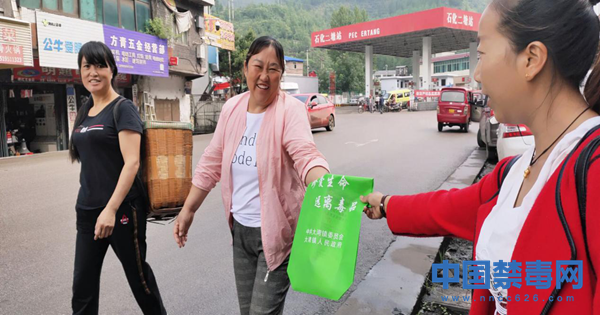 中国禁毒网讯 7月10日,贵州省六盘水市大湾镇禁毒办对大湾周边商铺开展禁毒宣传。