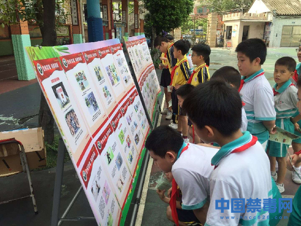 图为松溪小学学生观看禁毒知识展板。中国禁毒网发