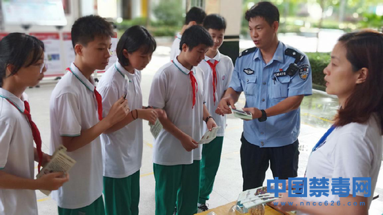图为社区民警为学生讲解毒品知识。中国禁毒网发