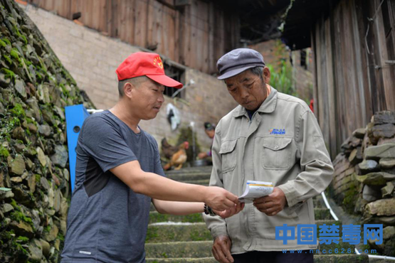 图为志愿者为村民科普毒品相关知识。中国禁毒网发