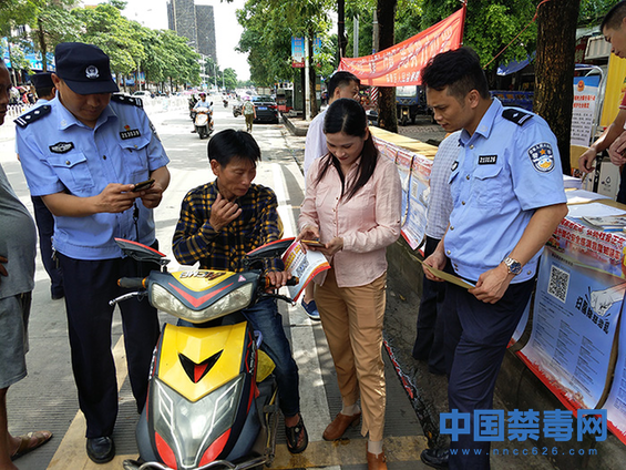 图为民警向群众宣传禁毒知识。中国禁毒网发