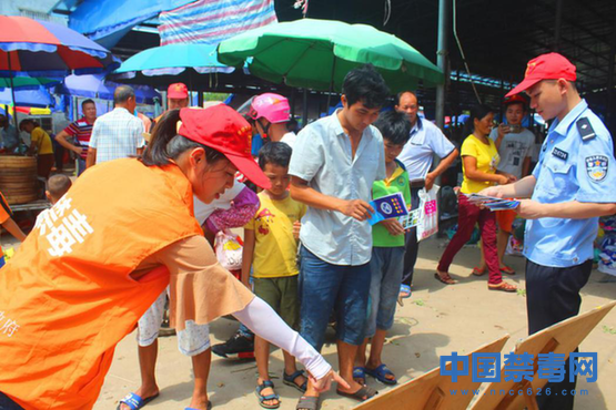 中国禁毒网讯 近日,广东省廉江市良垌镇禁毒办联合新华派出所开展了以“一人吸毒,全家遭殃,社会受害”为主题的禁毒宣传活动。
