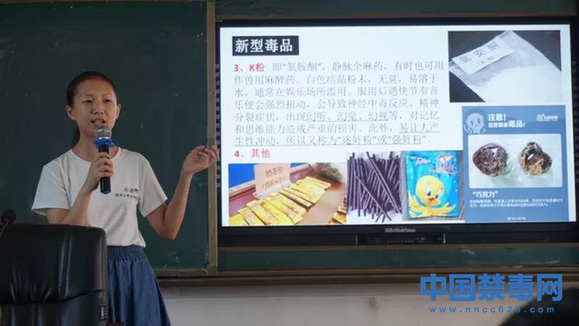 图为禁毒讲师为学生们讲解新型毒品。中国禁毒网发