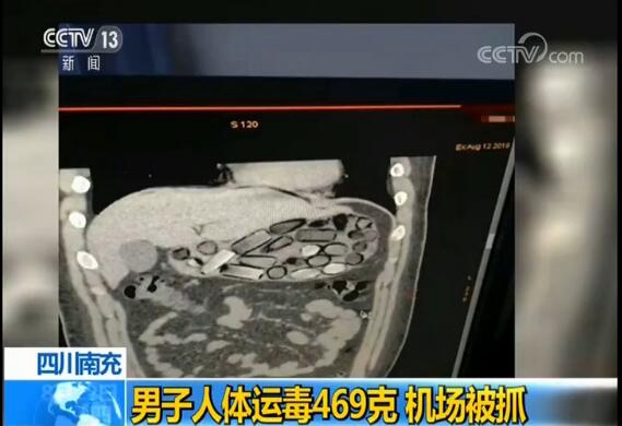 当天晚上,经过警方盘查,男子张某当场承认通过吞服的方式,运送疑似毒品海洛因的颗粒物。随后,民警将嫌疑人带往医院做CT检查,医生发现嫌疑人胃部有大量的不明物体。