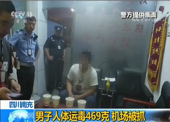 四川南充警方近日根据线索,在南充高坪机场将一名通过人体藏毒方式运送毒品的男子抓获。