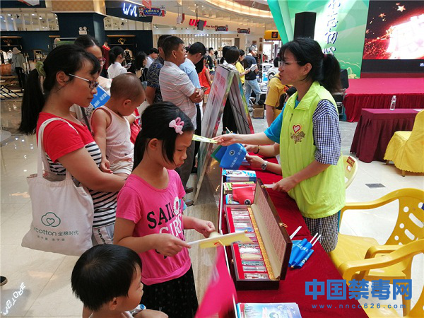 中国禁毒网讯 8月22日,广东省鹤山市委宣传部、市创文办等单位在坚美广场开展“传递新思想,弘扬新时尚”鹤山市新时代文明实践“七个一百”精品项目下基层活动,市禁毒办联合市禁毒志愿者服务总队应邀在现场开展了禁毒宣传活动。