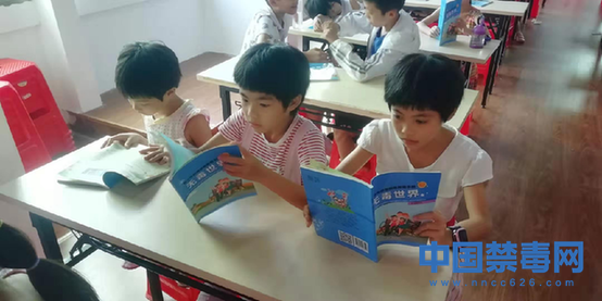 图为青少年阅读禁毒宣传书本。中国禁毒网发