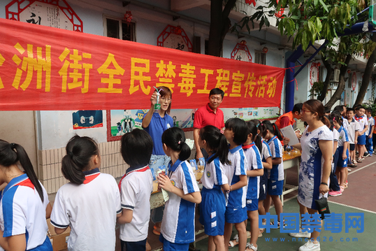 中国禁毒网讯 9月2日上午,广州市白云区松洲街在新苗小学开展以“抵制毒品侵害,珍惜美好年华”为主题的禁毒宣传活动。