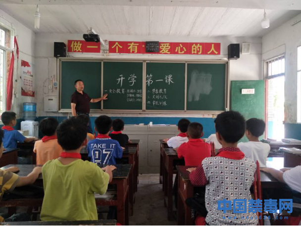 中国禁毒网讯 8月28日上午,贵州省黔东南苗族侗族自治州凯里市万潮镇综治办、司法所利用万潮小学开学典礼的契机,开展了以“无毒人生灿烂,涉毒人生黯淡”为主题的万潮镇法治扶贫暨禁毒宣传进校园活动,为孩子上了一堂多彩的秋季“开学第一课”。