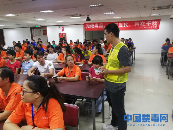 中国禁毒网讯 9月3日下午,深圳市宝安区蚝二社区组织工作人员前往奇宏电子厂办公大楼培训室开展主题为“拒绝毒品 功在当代 利在春秋” 的禁毒宣传活动。