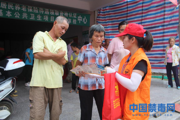 图为工作人员向群众讲解毒品知识。中国禁毒网发